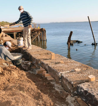 Con una antigua técnica, restauran un muro de piedra en el puerto de Colón