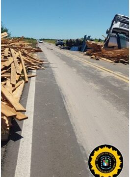 EN LA MADRUGADA DEL DOMINDO 22 SE PRODUJO UN VUELCO DE UN CAMION CARGADO CON MADERA EN RUTA PROVINCIAL Nº 6