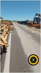 Como protagonista tuvo lugar un camión marca Volkswagen modelo 19360 con cargamento de madera, el cual era conducido por un hombre de 32 años de edad oriundo de la Provincia de Santa Fe, quien manifiesto a los uniformados, habría esquivado un caballo perdiendo el control del rodado lo que provocó el vuelco, teniendo como destino la ciudad de Buenos Aires.