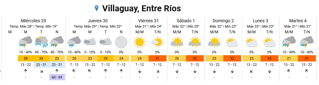 Según precisa el SMN, en Paraná, La Paz y alrededores, para la noche habrá fuertes vientos, con ráfagas de hasta 69 km/h. En otras ciudades del sur provincial serán de hasta 59 km/h.
