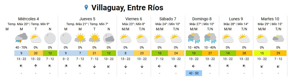 Durante el fin de semana podrían alcanzarse los 27 grados en Villaguay, con probabilidad de alguna inestabilidad el domingo.