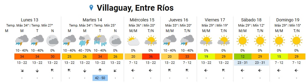 En tanto, mañana martes la temperatura seguirá igual, pese al anuncio de lluvias en la zona, ya que no se prevé un descenso de los registros. Será de 25 grados la mínima y nuevamente, de 34 la máxima. Se prevén tormentas aisladas durante la madrugada, la mañana y chaparrones a la tarde, luego mejorando a la noche con cielo parcialmente nublado.