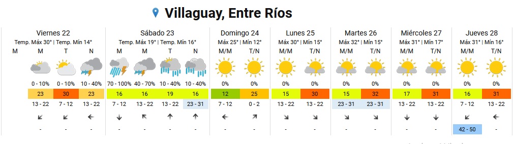 La advertencia abarca los departamentos Diamante, La Paz, Nogoyá, Paraná, Villaguay, Gualeguay y Victoria; además de zonas de Buenos Aires, Santa Fe, Córdoba y La Pampa.“El área será afectada por tormentas, algunas localmente fuertes, pudiendo estar acompañadas de intensas ráfagas, importante actividad eléctrica, abundante caída de agua en cortos períodos y principalmente caída de granizo”, detalla el informe.