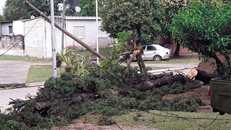 Un intenso aguacero, acompañado por fuertes ráfagas de viento y tormentas eléctricas, se produjo pasadas las 23 de este viernes en Paraná., caídas de árboles, ramas y voladuras de techos en la capital entrerriana.