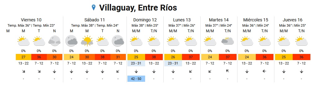 Se anuncia que el sábado, domingo y lunes, serán las jornadas más calientes, con registros máximos significativos en gran parte del país. En el caso de Entre Ríos llegarían hasta los 38 grados.Se espera que entre el próximo martes y el miércoles comiencen a evolucionar tormentas locales y sectorizadas para varias provincias del área central: Córdoba, La Pampa, Buenos Aires, San Luis y Mendoza.
