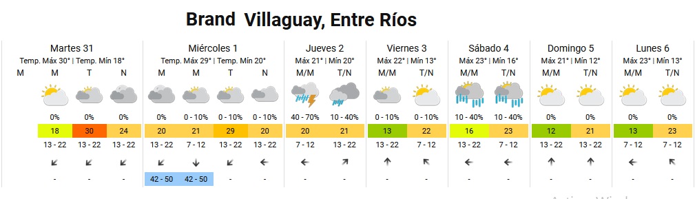 Para el jueves el calor comenzará a mermar en gran parte de la franja norte de Argentina, con el cambio de vientos al sudeste y la posibilidad de algunas tormentas aisladas en Santiago del Estero, Chaco y Corrientes. De igual manera, más hacia el norte, algunos sectores como Formosa podrán presentar todavía temperaturas muy altas de más de 37 °C.