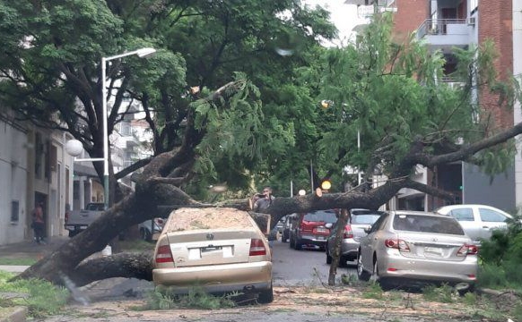 PARANÁ – Por la tormenta, cayó un árbol de grandes dimensiones y dañó autos