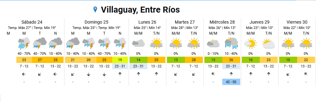 Persiste alerta por tormentas fuertes para Entre Ríos – datos de lluvia de Villaguay