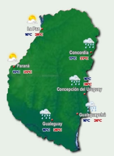 El Servicio Meteorológico Nacional -SMN- pronostica probabilidad de lloviznas aisladas durante toda la jornada del viernes a lo largo de la costa este de Entre Ríos, sobre el río Uruguay.
