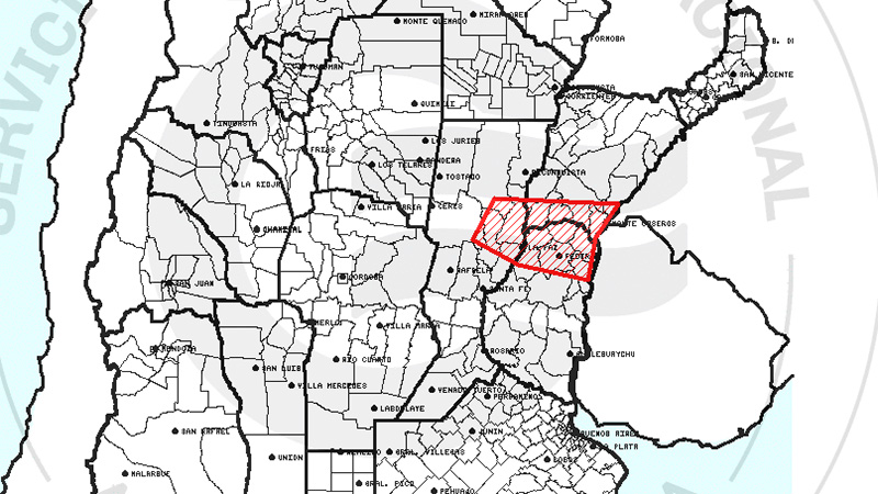 Por otra parte, rige un aviso a corto plazo por tormentas fuertes con ráfagas y ocasional caída de granizo para Concordia, Federación, Federal, La Paz, Feliciano, San Salvador y Villaguay.