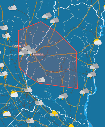 Además, a las 5.49 publicaron un aviso a corto plazo –que tiene una validez por tres horas– por tormentas fuertes con lluvias intensas, que afectarán a parte de Entre Ríos y Santa Fe.En nuestra provincia, el alerta incluye a Concepción del Uruguay, Diamante, Gualeguay, Gualeguaychú, La Paz, Nogoyá, Paraná, Tala, Victoria y Villaguay. Mientras que en Santa Fe, afectará a Garay, La Capital, Las Colonias, San Jerónimo, San Justo y San Lorenzo.