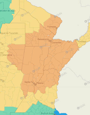 El Servicio Meteorológico Nacional (SMN) emitió a las 6.01 de este martes un alerta naranja por tormentas, que afectarán al norte y centro de Entre Ríos, así como también a Corrientes y partes de Formosa, Chaco, Santa Fe y Santiago del Estero.
