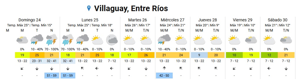 El Servicio Meteorológico Nacional (SMN) dio a conocer este domingo un alerta amarilla por tormentas, que rige para Entre Ríos y otras provincias. Acorde al organismo, los fenómenos tendrían lugar este domingo a la noche.