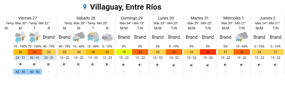 Región núcleo con nubosidad en aumento y evolución de tormentas y chaparrones en el caso de las provincias de Entre Ríos y Santa Fe.