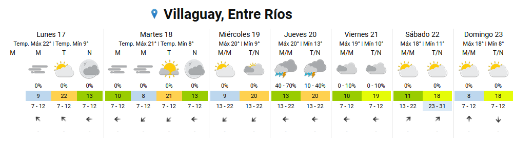 PRONÓSTICO DEL TIEMPO #EntreRíos Las mañanas continuarán frescas y las tardes no aumentarán mucho de temperatura. Se ubicarán entre 18 y 22 grados