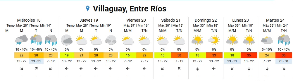 Tiempo Según el pronóstico, hay probabilidad de precipitaciones para esta tarde noche en Villaguay, Paraná, Concordia, Gualeguaychú y otras zonas de la provincia