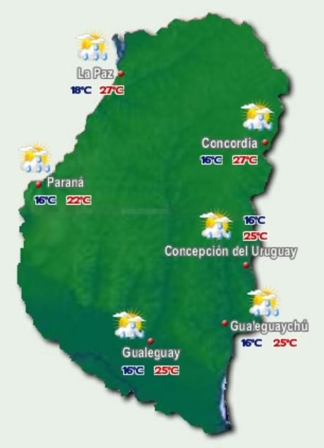 Se esperan temperaturas mínimas de 16ºC y máximas de 22ºC en Paraná, 27ºC en La Paz y Concordia y 25ºC en el resto de la provincia.