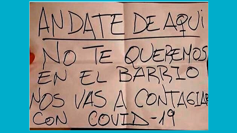 «No te queremos en el barrio, nos vas a contagiar», señala el cartel que vecinos de la localidad de La Paz dejaron en la casa del director del principal hospital del departamento. Autoridades repudiaron el episodio.