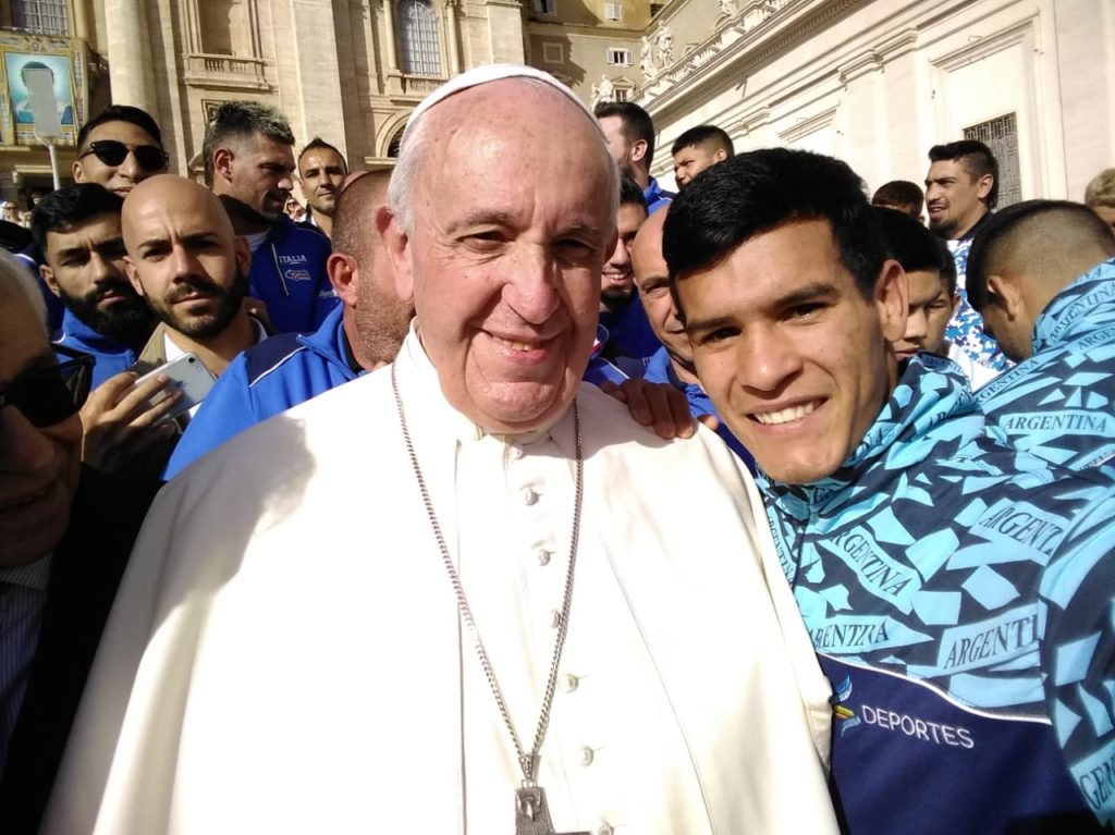 Junto al seleccionado argentino, Alexis, tuvo la oportunidad de saludar y conocer al Papa Francisco, tras su visita en Roma.