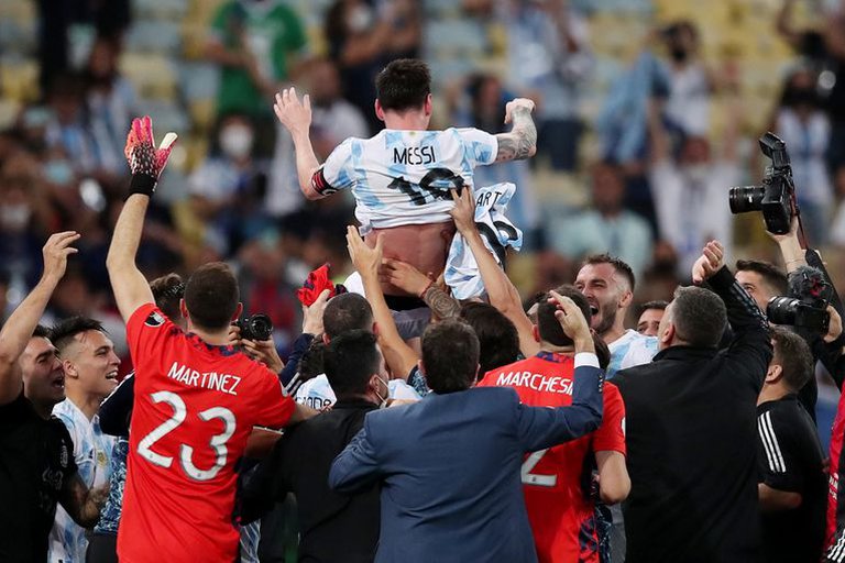 Y Messi, el Messi que colecciona coronas con el Barcelona, se probó por primera vez una con la Selección Mayor (ya la tenía con la Sub 20 -Mundial 2005- y la Sub 23 -JJOO 2008). Quedaron atrás las Copas América 2007, 2015 y 2016, más la definición del Mundial 2014 ante Alemania. Esta vez no miró el trofeo con recelo y con rencor. Lo levanta, orgulloso. El fútbol se lo debía. Y se dio en el templo de este deporte en Río de Janeiro. Así como Uruguay tuvo su Maracanazo en 1950, Argentina y Messi rubrican el suyo en 2021. Histórico. Inolvidable.