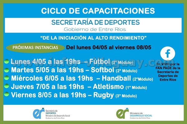 Es importante recordar que la Secretaría de Deportes, a cargo de José Gómez, ha puesto a disposición de los participantes material teórico brindado por los capacitadores, los cuales se pueden solicitar a través del email secdeporteser.capacitaciones@gmail.com.