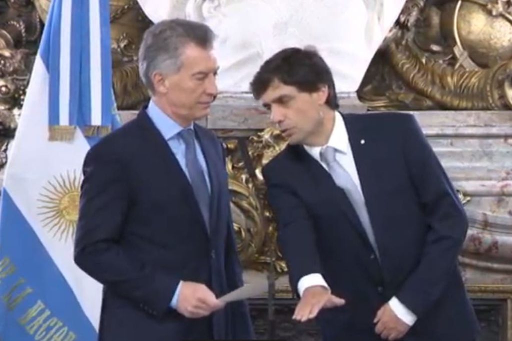 Tras la jura, Macri saludó a los presentes y pronunció un breve discurso en el que dijo: «Quiero agradecer a Hernán Lacunza por aceptar esta responsabilidad compleja en un momento tan difícil. Y también a la familia, porque siempre necesitamos ese apoyo».