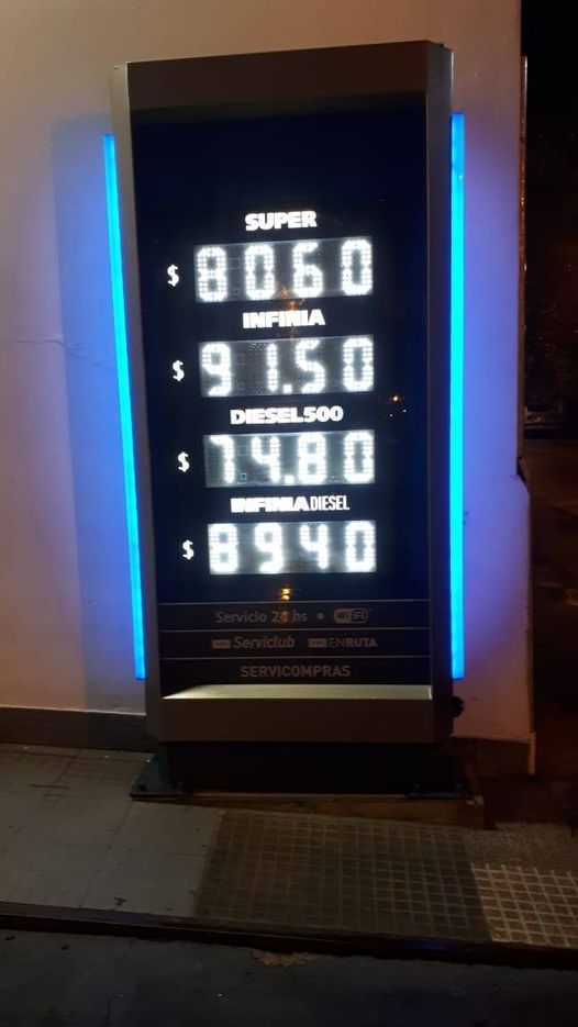 Y la Infinia diésel se vendía a 87,70 pesos y ahora vale 89,40 pesos por litro.