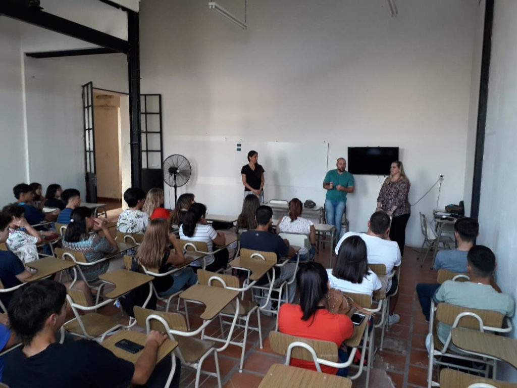 Ante una excelente convocatoria de estudiantes personal de la Facultad: Técnico Guillermo Cuevas, Lic. Melina Cassottano y los Profesores a cargo de los Módulos Matemática, Prof. Diana Pizzini, el Prof. José Sack, a cargo de los Módulos Vida Universitaria y Derechos Humanos y la Técnica Gabriela Tasse, quien dicta el Módulo de Introducción al Turismo, dieron la bienvenida al grupo de ingresantes. En una charla amena se hicieron las presentaciones de cada uno de los profesionales, se brindó información general y de interés para el alumno, así como también sobre todas las posibilidades que brinda la universidad pública, el sistema de Becas, la tarjeta del estudiante universitario, la biblioteca de la sede, soporte informático, entre otros.