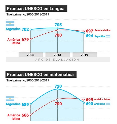 Los malos resultados de Argentina en pruebas internacionales no son una novedad. Cada edición de PISA refleja un atraso profundo comparado a países de primer mundo. Lo que sí llama la atención es que en ERCE también “pierde” en la comparativa con países vecinos, a los que hasta hace 15 años superaba. Más aún: ERCE, a diferencia de PISA, no toma las mismas preguntas para todos los países. Elabora el cuestionario en base a las currículas locales. Es decir, pregunta por los contenidos que los chicos deberían saber.