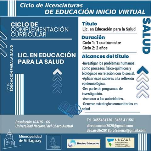 El municipio incorpora nuevas ofertas educativas universitarias en forma virtual. Es mediante convenio con la Universidad Austral del Chaco. Se inscribe para la Licenciaturas en Educación Física, Gestión Educativa y Educación para la Salud.