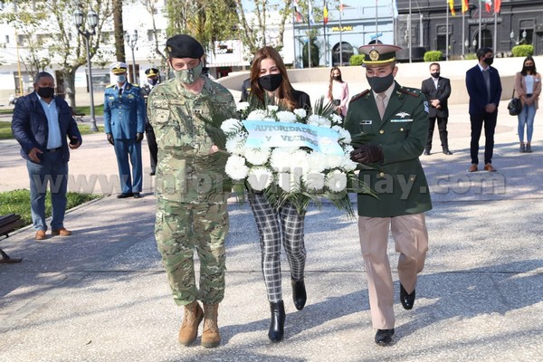 La ceremonia se desarrollo en la Plaza 25 de Mayo sin presencia de publico y dio comienzo con el izamiento de la Bandera Nacional a cargo de la Sra. Intendente Municipal Maria Claudia Monjo, la Bandera de Entre Rios por el Segundo Jefe del Regimiento Mecanizado 5 Mayor. Roberto Cari y la Bandera de Villaguay por el Teniente Emiliano Castaño de la Fuerza Aérea Estación Radar. Acompañaron esta ceremonia el Diputado Provincial Juan Pablo Cosso, efectivos de gendarmería, Escuela de policía, Instituto de formación penitenciaria.