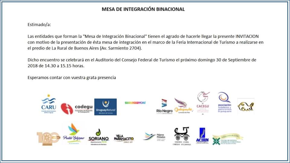Domingo 30 de septiembre, a las 14.30hs – Presentación oficial de la “MESA DE INTEGRACION BINACIONAL”