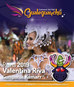 La representante de la comparsa Kamarr , Valentina Riva (23 años) fue coronada esta noche como la Reina del Carnaval del País, edición 2019, ante un muy buen marco de público que copó las mesas y tribunas en el Corsódromo de la ex estación ferroviaria.
