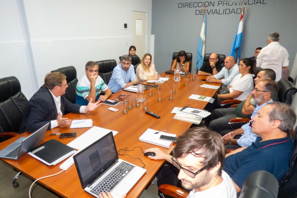 El director y el subdirector de la Dirección Provincial de Vialidad (DPV), Exequiel Donda y José Palacios, se reunieron con representantes de comunas y juntas de gobierno del departamento Villaguay, para planificar tareas de conservación en la red de caminos productivos y de uso social de la zona.