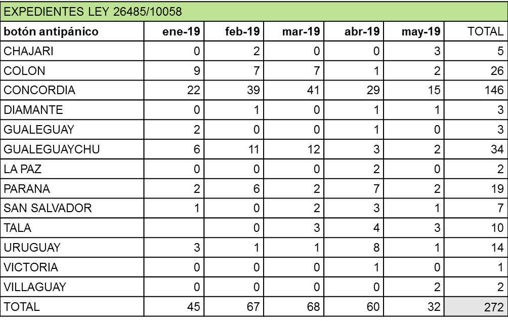 El Registro Judicial de Causas y Antecedentes de Violencia (Rejucav), que funciona en el espacio de la Oficina de Género del Superior Tribunal de Justicia de Entre Ríos (STJER), entre otras acciones lleva un registro del que se desprende que en la provincia hubo entre el 1 enero y el 28 mayo de este año 5.603 denuncias de algún tipo de violencia contra la mujer y que actualmente 522 mujeres portan botón antipánico como medida de protección.