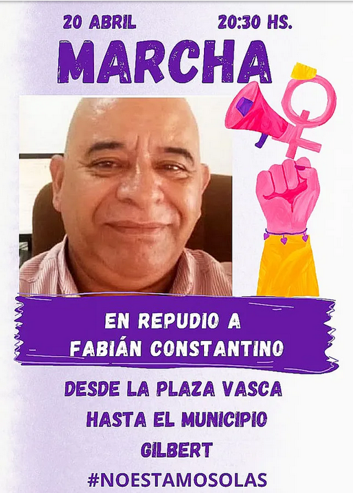 La primera denuncia la presentó Luján Aguirre, una empleada de Prensa municipal, a mediados de 2021. Detrás de ella se animaron otras dos mujeres que habían sido abusadas por Constantino. Otras mujeres describieron el contexto de violencia de género en que ejercía el poder el intendente, diciéndoles «nadie es imprescindible», «acordate que tu papá y tu mamá trabajan en el municipio y como los pongo los puedo sacar», «acordate que te puedo dar una solución habitacional o quitártela», y otras amenazas para que no denuncien la situación.