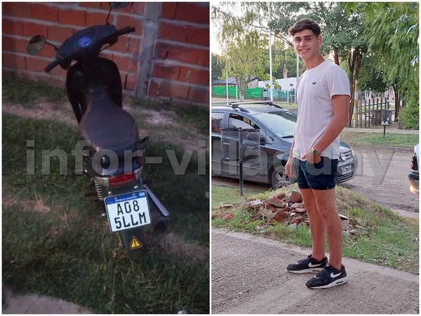 El joven mide aproximadamente 1.75 mts. de altura, es de tez blanca, de contextura robusta, con cabello corto de color castaño claro, ojos marrones, no posee barba, posee tatuajes en el antebrazo derecho con la figura de un lobo, posiblemente puede tener colocados aros en las orejas y cadenitas dorada y plateada en el cuello, posee un reloj dorado y zapatillas negras o blancas. El joven conduce una motocicleta Zanella ZB color azul con negro y espejo invertido hacia abajo, con dominio colocado «A085LLM».
