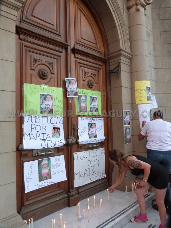 A pesar del calor reinante la gente acudió a la cita, que era frente a tribunales para pedir Justicia por la muerte de Maria Jesus la beba de 5 meses y medio que fué dejada en en el jardin maternal «Gurises» el pasado 12 de Noviembre por Delfina, su mamá y en circunstancias no demasiado claras falleció, para luego llamar Emergencias y pese a los esfuerzos realizado por los médicos nada se pudo conseguir.