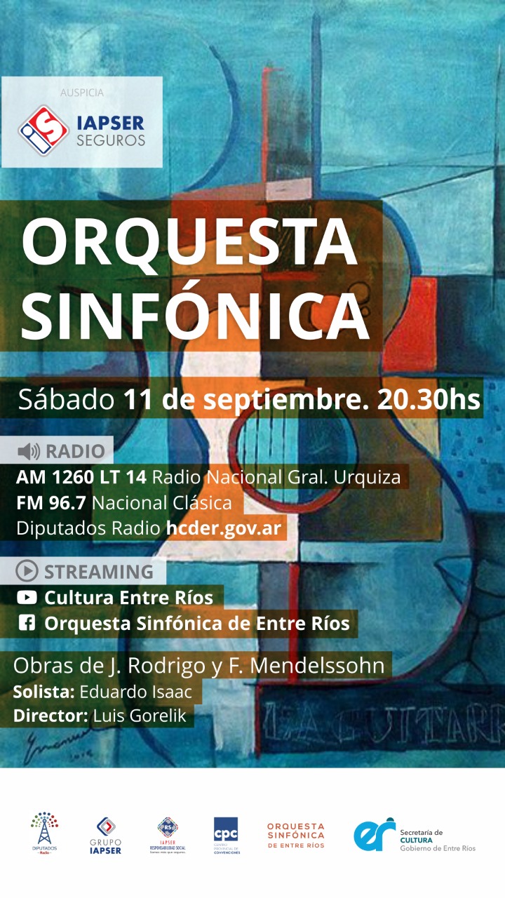 La OSER contará este sábado con Luis Gorelik como director y con Eduardo Issaac como solista, e interpretará obras de Joaquín Rodrigo y Félix Mendelssohn. El ciclo pretende amplificar el arte musical y brindar múltiples maneras de acceder a los conciertos de la orquesta dependiente de la Secretaría de Cultura de la Provincia, considerada una de las tres mejores del país.