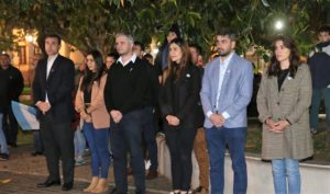 La ceremonia, realizada en la explanada frente al Palacio Municipal en medio de lloviznas intermitentes, contó con la participación del diputado provincial, Juan Pablo Cosso; el viceintendente, Gonzalo Devetter; los secretarios de Gobierno, Débora Canton Debat, y de Hacienda, Elisandro Van Cauwenberghe; la concejal Daiana Ríos; entre otros funcionarios locales, autoridades de las fuerzas de seguridad, representantes de entidades intermedias y vecinos.