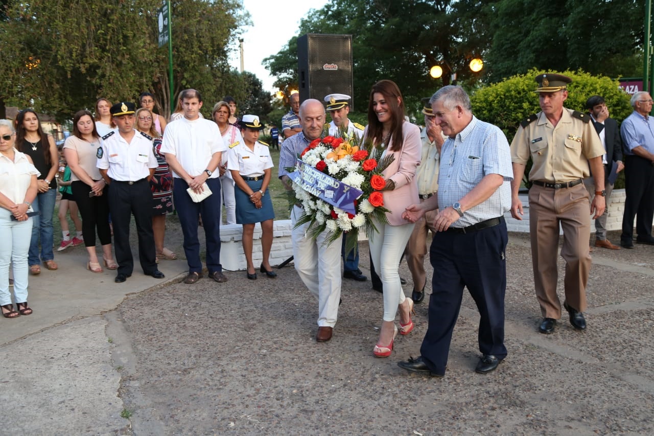 Luego de la entonación de las estrofas del Himno Nacional y de la Marcha de Entre Ríos se procedió a la colocación de una ofrenda floral al pie del monolito que guarda la historia de la ciudad y la evocación religiosa a cargo del Sacerdote de la Parroquia Santa Rosa de Lima Padre Emmanuel Troppini.