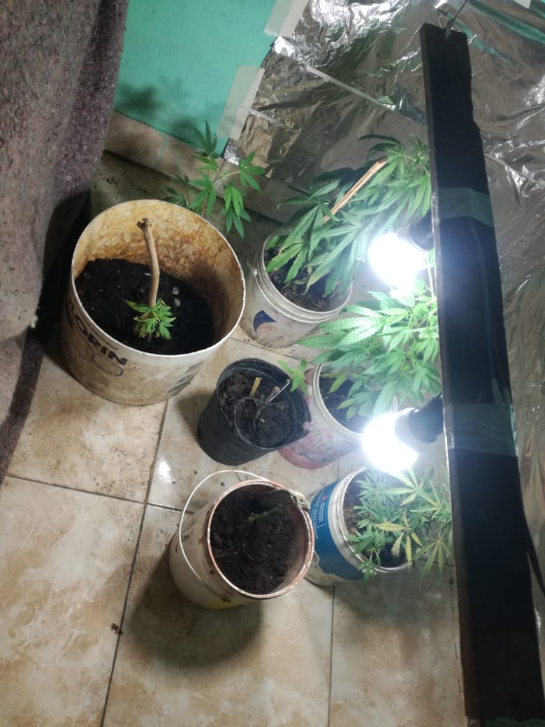 Mediante Oficio librado por el Juzgado de Garantías local, se procedió a realizar allanamiento y registro domiciliario en calle Concordia de esta ciudad, arrojando como resultado el secuestro de una escopeta calibre 16, una carabina calibre .22, un revólver calibre .22, 25 cartuchos calibre 12, 19 cartuchos calibre .22, dos recipientes con perdigones de diferentes tamaños, siete plantas de marihuana de diferentes tamaños y un sistema de iluminación artificial que se usaba para dichas plantas.