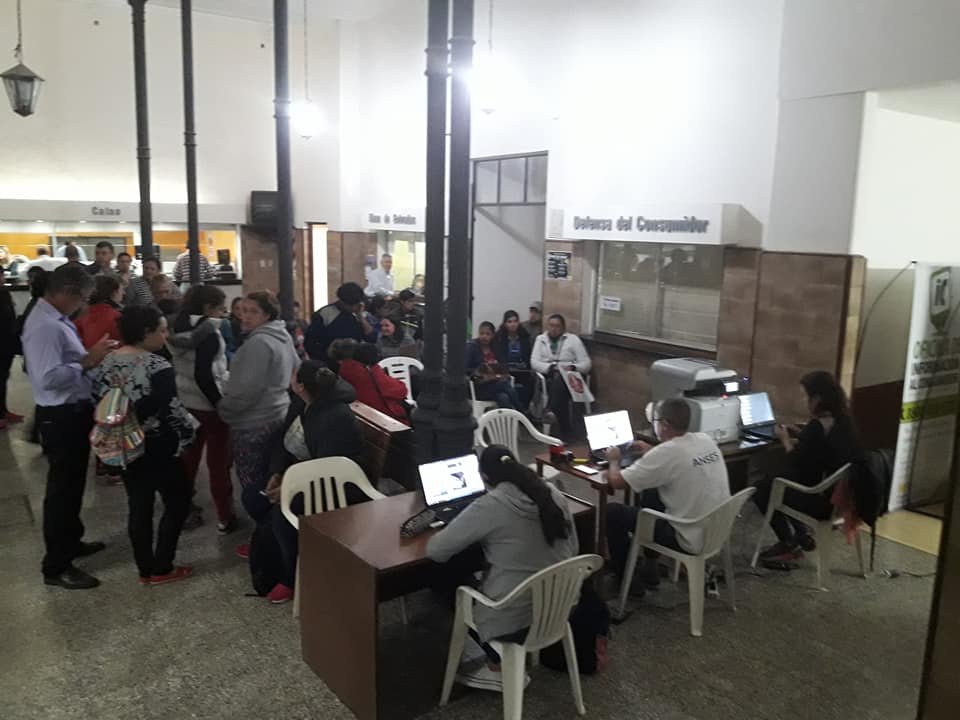 Las unidades móviles de ANSES y RENATER ( Registro Nacional de las personas) atienden en el hall del edificio municipal debido a la lluvia.