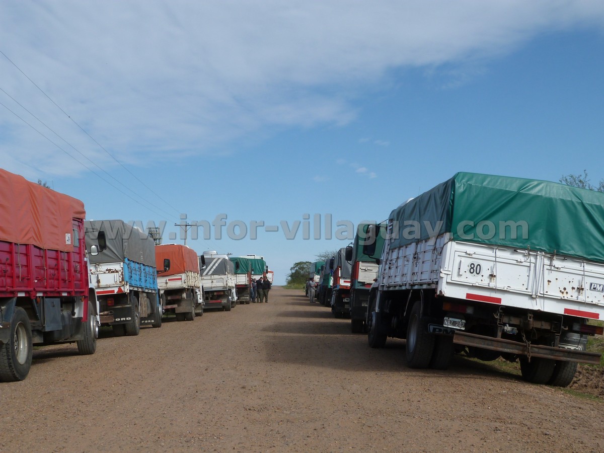El grupo de camioneros allí presente le comentaron a infor-villaguay que hay camiones que hace dos meses no reciben una carga, y que las esperas para cargar son muy largas, a veces de dos días, y no les proporcionan los elementos mínimos para tan larga estadía como son unos sanitarios, debiendo usar un conjunto de arboles de eucaliptus para realizar necesidades.