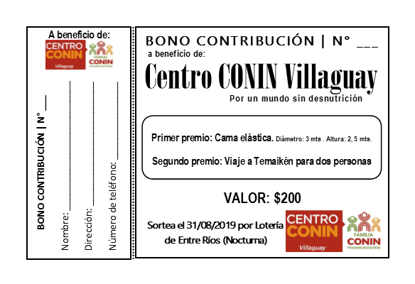 El Centro CONIN Villaguay, que trabaja en la prevención de la desnutrición infantil, lanza una rifa a fin de generar recursos para sostener el funcionamiento y realizar un entrepiso para acondicionar una sala de estimulación y consultorio profesional.