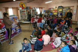 Con mucha atención los niños escucharon a nuestra campeona, atentos a los detalles y condimentos de humor con que la Gurisa relató su historia en el boxeo. Lugares, personalidades, nuevas culturas, muchos amigos son algunos de los frutos de profesión, al tiempo que los instó a seguir siempre en la escuela, La Campeona se comprometió, ante ellos, a terminar sus estudios secundarios interrumpidos por las exigencias de su carrera.