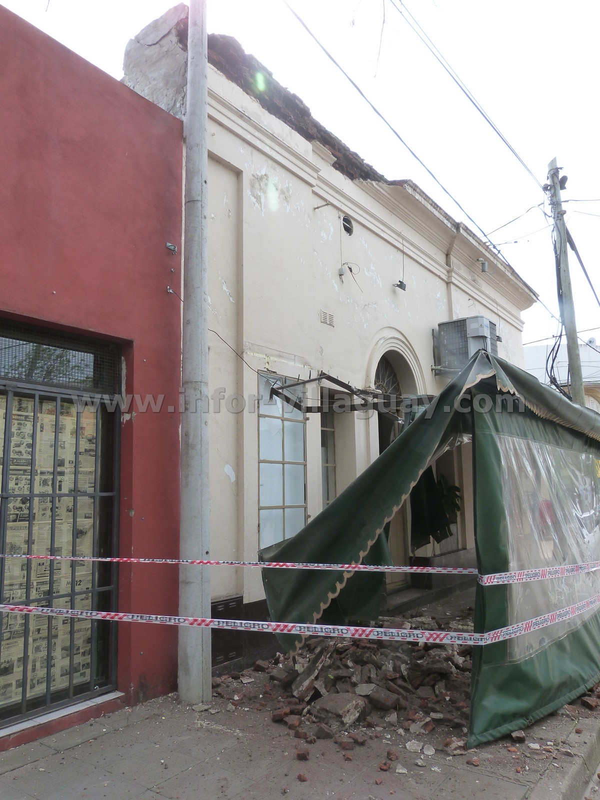 Su propietario en dialogo con infor-villaguay, manifestó se encontraba a la espera del agente asegurador, yá que tiene cubierto los daños en el exterior del edificio, incluyendo el toldo, luego seguramente vendrá una revisión de peritos municipales quienes dispondrán el cierre o no del comercio en cuestión, después de evaluar la posibilidad de nuevos derrumbes de la cornisa.