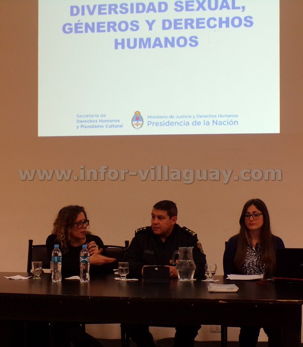 Se llevo a cabo en el Centro de Convenciones Papa Francisco una charla de capacitación sobre Diversidad Sexual, Géneros y Derechos Humanos, en el Ámbito de las Fuerzas de Seguridad. El jefe de policía Comisario Mayor Daniel Randisi junto a la Agente Técnica Licenciada en Psicología Andrea Aubry del Departamento de Relaciones Institucionales de la Jefatura de Policía, realizaron la apertura y presentación de la disertante Dra. Lucia Boca de la Dirección General de Políticas Integrales de Diversidad Sexual, Subsecretaria de Promoción de Derechos Humanos, Secretaria de Derechos Humanos y Pluralismo Cultural de la Nación. La capacitación conto con la presencia de representantes de Ejército, Servicio Penitenciario, Personal de la Jefatura de Policía Departamental Villaguay, Escuela de Agentes y Bomberos Voluntarios. El evento dio inicio a las 16:00 horas extendiéndose hasta las 19:30 horas. Donde se abordó la Ley de protección de la Diversidad Sexual, Géneros y derechos Humanos, enfocado desde la importancia que implica el discernimiento de la normativa para las Fuerzas de Seguridad a la hora de actuar en la labor diaria, salvaguardando siempre los Derechos Humanos y la igualdad de las personas. Habiéndose producido un interesante intercambio con la disertante profundizando y enriqueciendo los conocimientos de los servidores públicos.