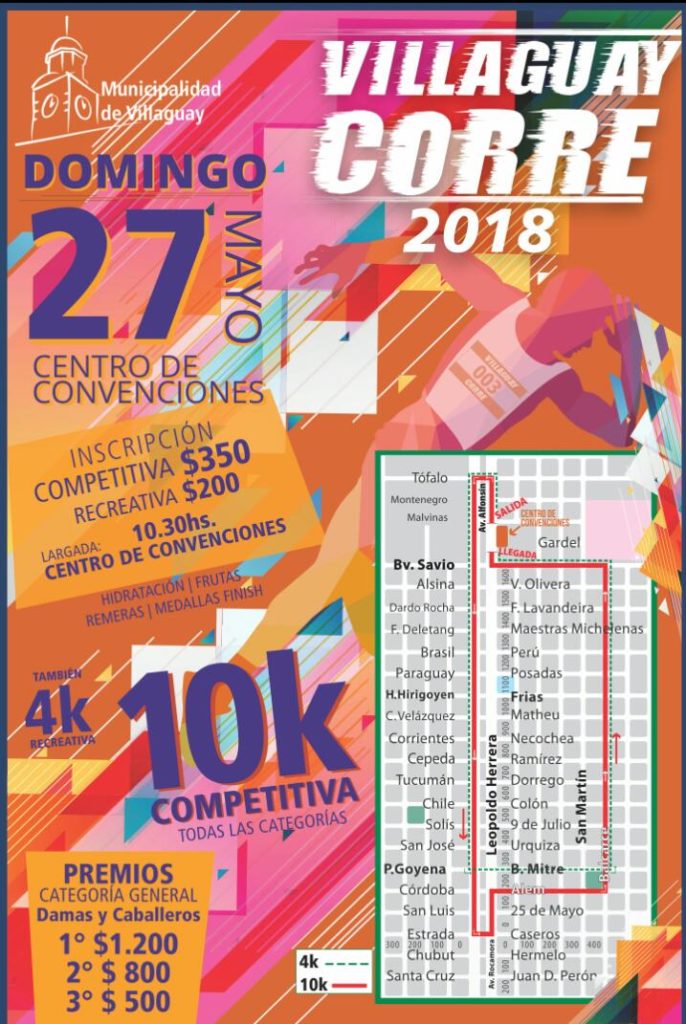 Organizada por la municipalidad de Villaguay a través de la dirección de Deportes, la carrera partirá por Alfonsín hacia el norte, girará en Tófalo para tomar por la otra mano de Alfonsín en dirección al sur hasta Caseros y volverá por Herrera hasta Alem.