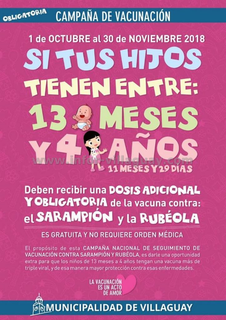 Se recuerda que el propósito de esta campaña es dar una oportunidad extra, para que los niños comprendidos entre los 13 meses y 4 años de edad reciban una dosis más de la triple viral y de esa manera tener mayor protección contra esas enfermedades.